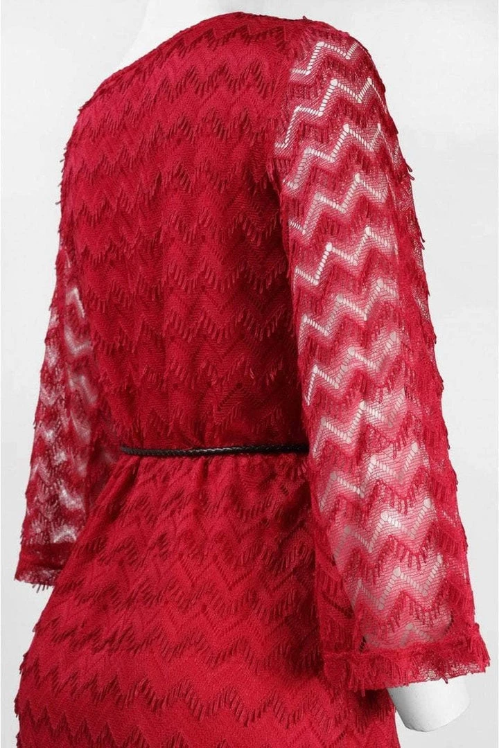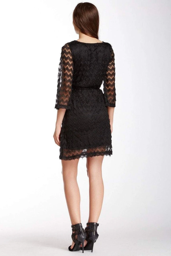 Make a stunning statement wearing Sharagano 4W4F164G5. Featuring semi-sheer loose sleeves in below the elbow length and bodice of textured lace with tiny fringe details in zigzag pattern stripes – creating an elegant chic look you????ll wear over and over again. Dress to impress as you appear with confidence in this comfortable-chic style by Sharagano.