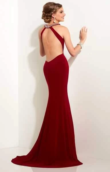 Opt for that classic old Hollywood aura with this timeless stunner by Studio 17 12599. Flaunting a figure-flattering silhouette, this statuesque beauty boasts of a beaded high halter neckline with an embellished yoke and an open back with a diamond opening. Accenting this fitted piece, an array of bust and side cutouts grace the bodice and midriff area. Created with a fine jersey fabric, the trumpet skirt fits sinuously and radiates down to a modest sweep train. Feel admiring glances gravitating your way in this svelte stunner by Studio 17.