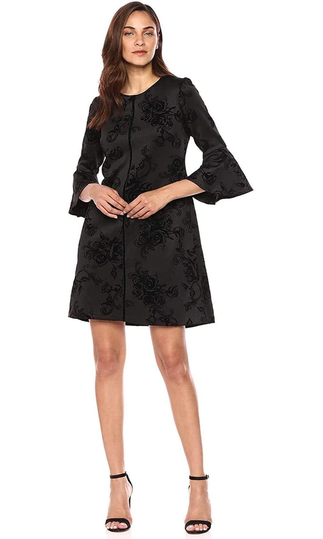 Gabby Skye - 18474M Floral Jacquard Bell Sleeve Seam Down Short Dress Cocktail Dresses