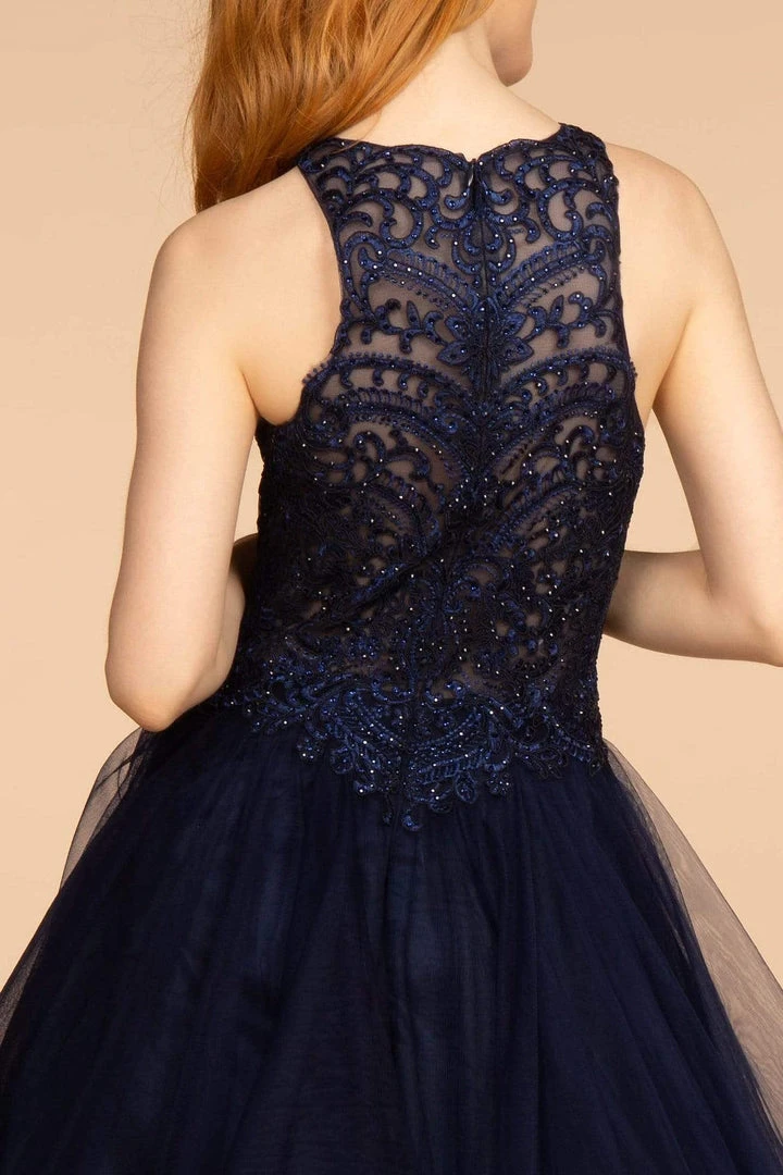 Make them swoon him over the sheer elegance as you walk down the aisle in this GLS by Gloria GL2528 creation. Beautified by stunning embroidered details set with rhinestones, this ensemble shows a jewel illusion over a sweetheart neckline. Designed with an adorned translucent back, tiers of diaphanous layers flares in asymmetrical hems before ending in a full-length A-line silhouette with a sweep of train. Lavish in the attention of the crowd and his tantalized eyes in this GLS by Gloria masterpiece.