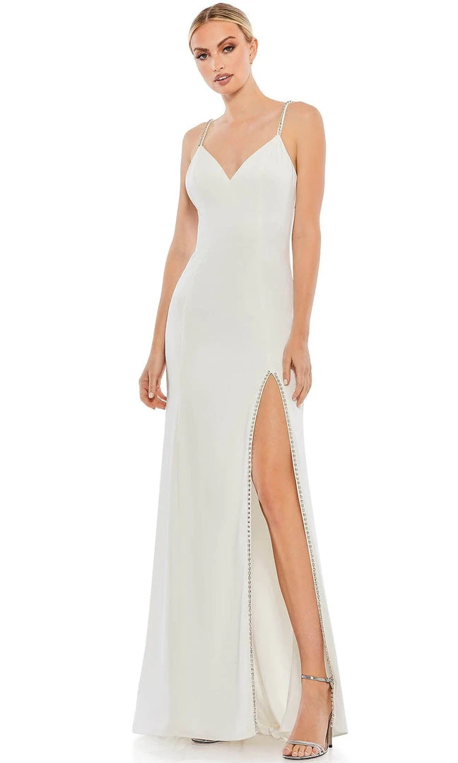 Be beautiful in this fashionable evening wearing Ieena Duggal 55706 gown. Showcases a fitted bodice, this gown displays a sleeveless and sweetheart neckline. This also highlights beaded embellished spaghetti straps and side slit while the back reveals mid-open enclosed with back zipper closure. The skirt cascades down to full-length sheath silhouette. This Ieena Duggal style is sure to make you the darling of the party! Exquisite attention to detail is the hallmark of Mac Duggal dresses. Mac Duggal dresses encapsulate the very essence of the women who wear them, reflecting their confidence, feminine power, and inner beauty.