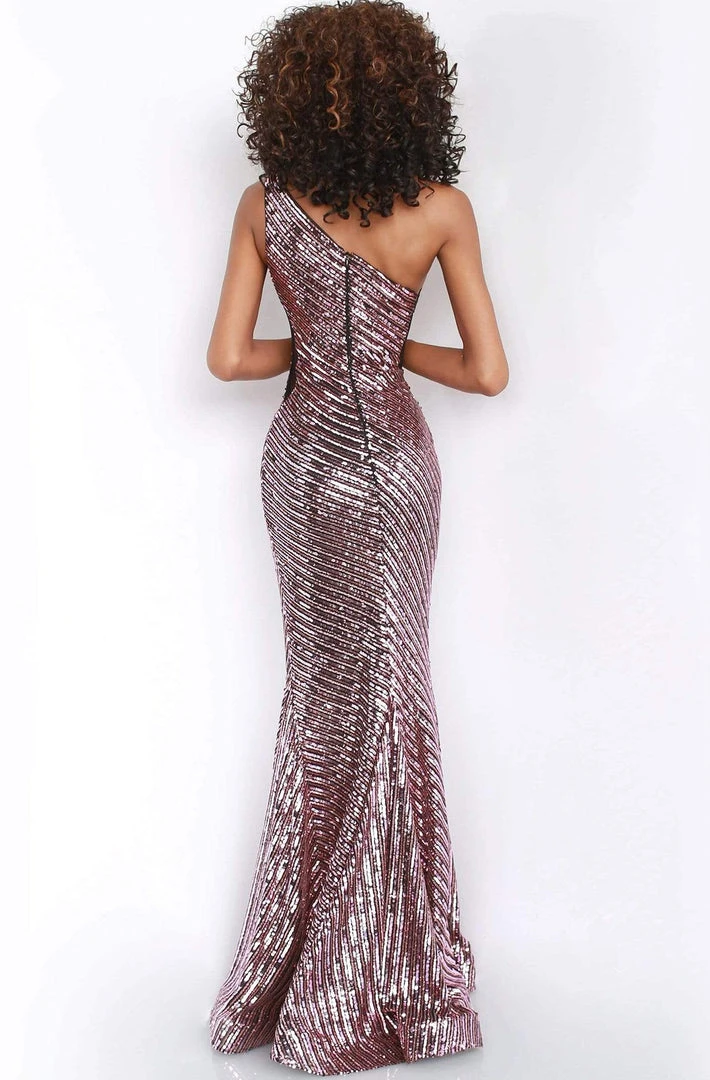 This enchanting dress by Jovani 3470 is sure to make you the center of everyones attention. This sequined dress features a sleeveless, asymmetric neckline with a fitted bodice. The skirt forms a flattering trumpet skirt and runs in full length hem. This Jovani dress is awesome for prom or for any special night event!