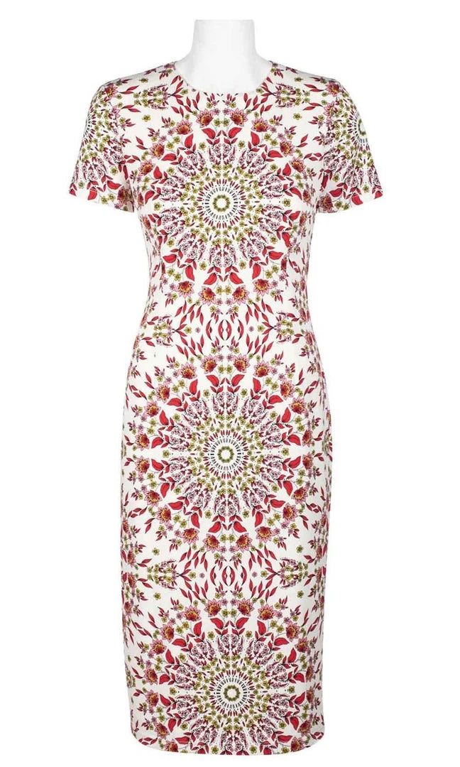 | Details: | Jersey, Short sleeves, Floral print, Enclosed back, Center back invisible zipper, Fully lined |