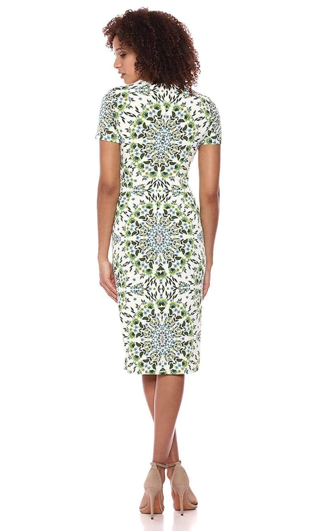 Inspire a chic, artful style in this midi-sheath dress by London Times T2918M. This floral multi-print jersey dress is styled with jewel neckline, short sleeves and a fully enclosed back with hidden center zipper. Radiate style and elegance in this London Times creation.