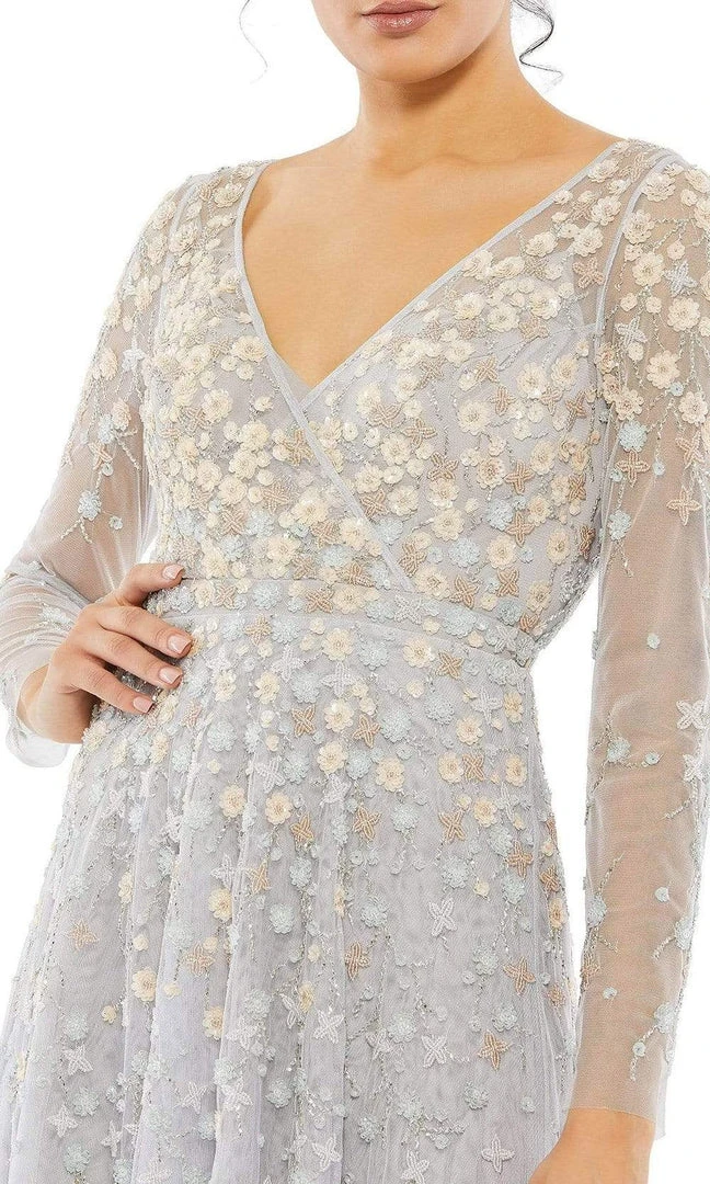 Show off your trendsetting style when you wear this Mac Duggal 9131. This dress gives you a look as fresh as daisy. Embellished with sequins in floral manner allover and uses a sheer long sleeves. It parades a flowy A-line silhouette in full length and uses a back zipper as closure. Mac Duggal is perfect for a girl who wants the standout style and flawless fit.