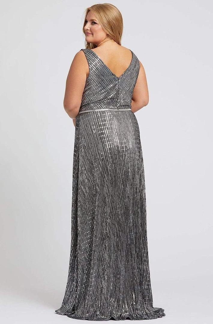 Orchestrate a spectacular evening of dazzling sophistication in this luxurious dress by Mac Duggal Fabulouss 48988. This long embellished dress fashions a sleeveless, plunging V-neckline with fitted bodice styled with a V-back and a zipper closure. The sheath skirt flourishes a in full length and is tailored with a high slit and a mini train finish. Exhibit exceptional style in this superb evening gown by Mac Duggal.