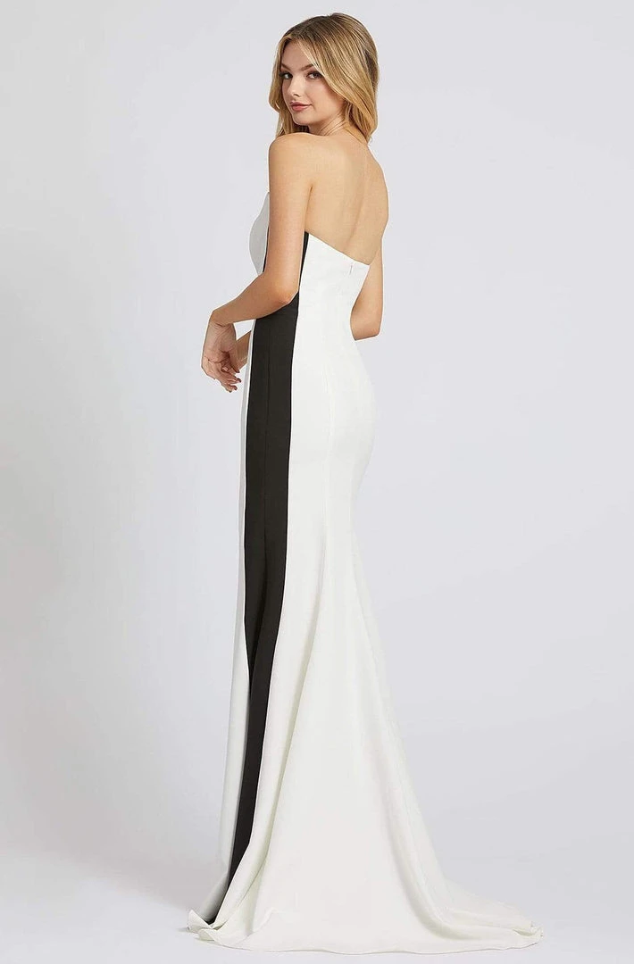 Flaunt your fabulous curves in this form-fitting evening dress by Mac Duggal Flash 49003. Contoured with princess seams, the fitted bodice features a strapless wide V neckline, complemented with mid-open zipped up back. The skirt parades a trumpet silhouette adorned with side slit to perfectly elongate your sexy leg and finishes with a sweep train. You are certain to capture the hearts and attention of everyone at your special event when you show up in this Mac Duggal creation.