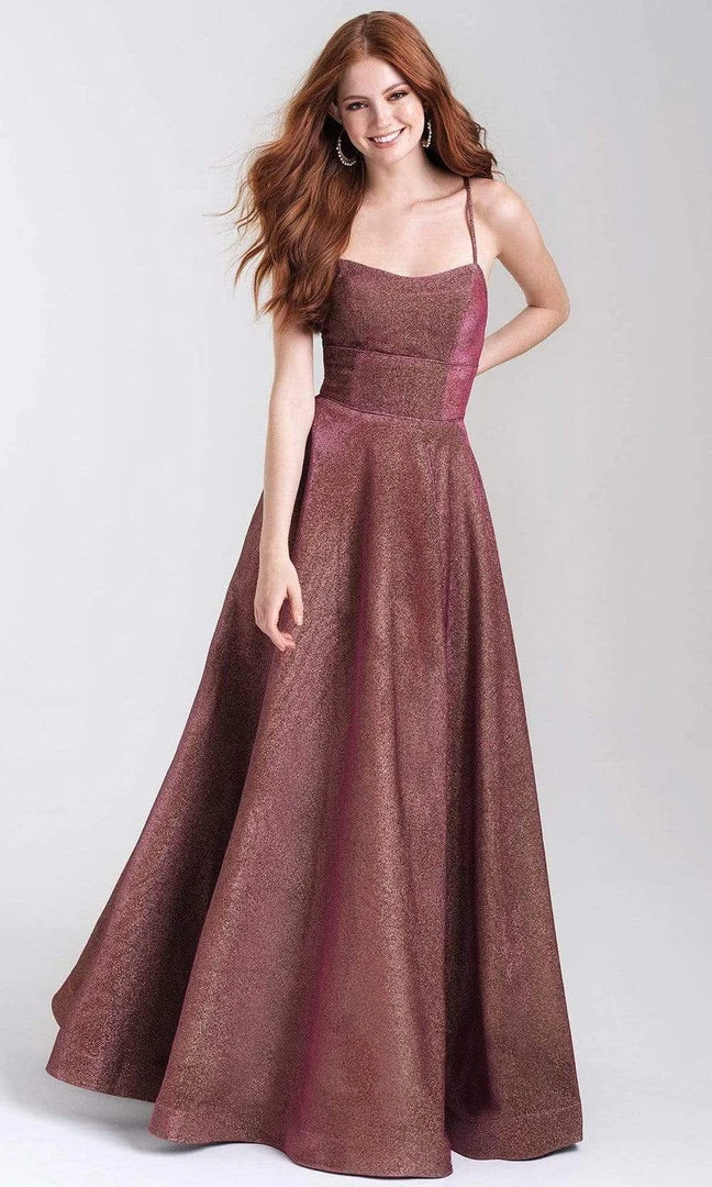 Be the spectacular belle on your next formal event in Madison James 20-381. Made of shimmer knit fabric, this long dress delights a sleeveless, scoop neckline with straps connecting to the strappy back. The skirt flourishes a full length A-line silhouette. This Madison James dress is sure to make a daring statement in that special affair!