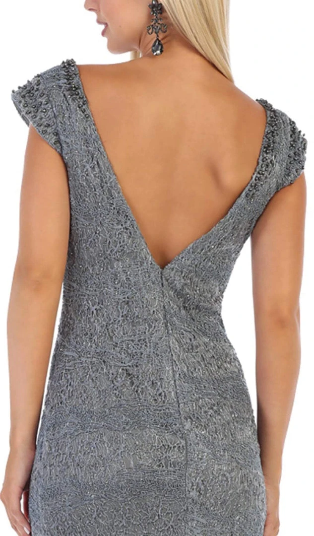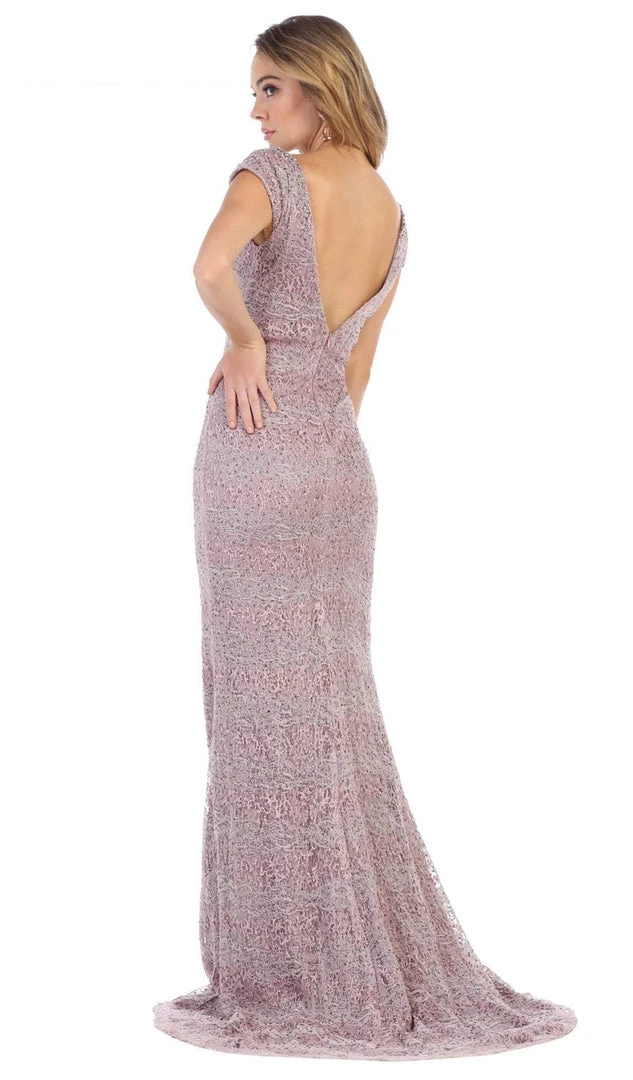 Get that glamorous casual feel with this dress from May Queen RQ7654. This embellished long dress delights in a cap sleeve, deep V-neckline with sheer inset at mid-bust. The back is styled with a low V-cut and from the waist flourishes a full length trumpet skirt with a slit and sweep train finish. This May Queen creation is simply perfect for your next formal party!