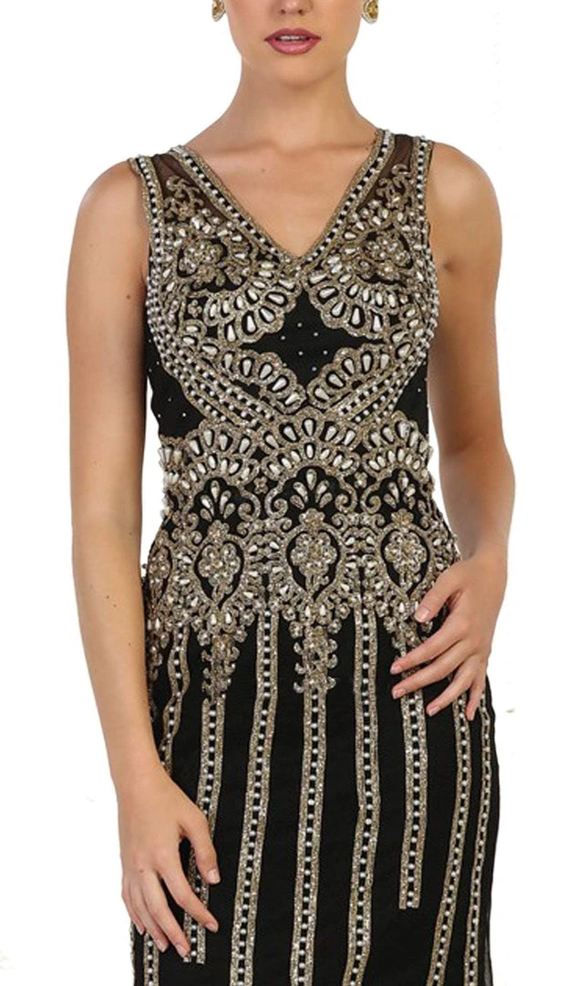May Queen - Sleeveless V-neck Embellished Sheath Evening Gown