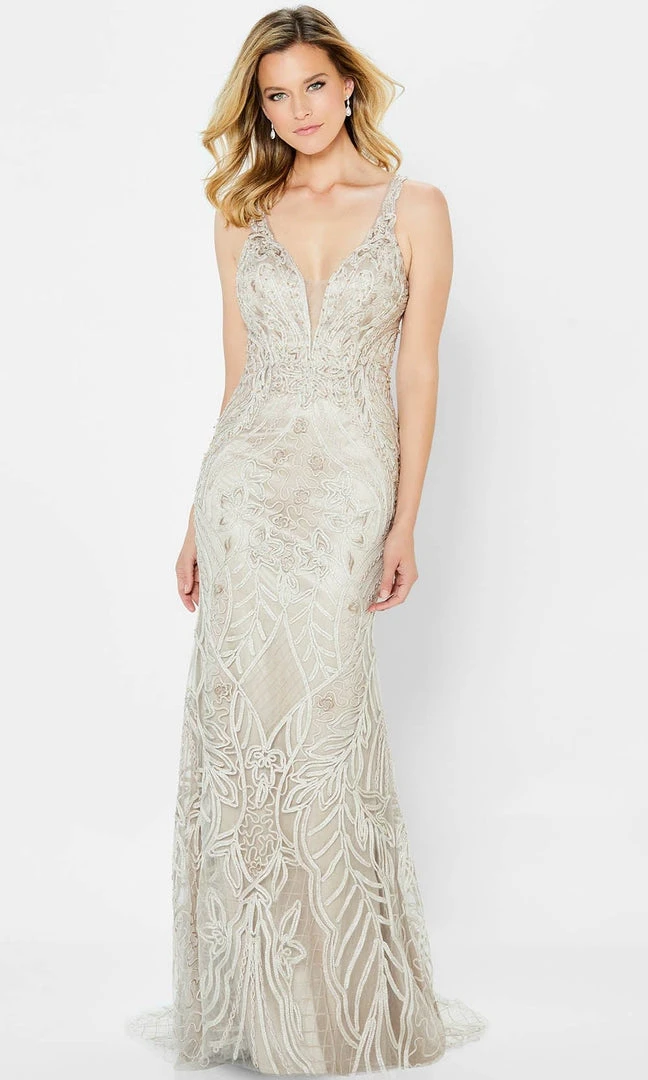 Go beyond beautiful in a precious gown from Montage by Mon Cheri 122904. Tune to the perfect touch of classic and sexy as you wear this intricate gown that features embroidered metallic ribbon with fit and flare silhouette. This gown flaunts plunging V neckline with mesh inset and a separate shoulder straps, draped tulle straps, and shawl included to suit your event’s theme. Show off your elegant style and soft curves in this beautiful Montage by Mon Cheri dress. Whether your style is modern trendy or timeless classic, Mon Cheri will clothe with poise, elegance and grace for your momentous occasion.