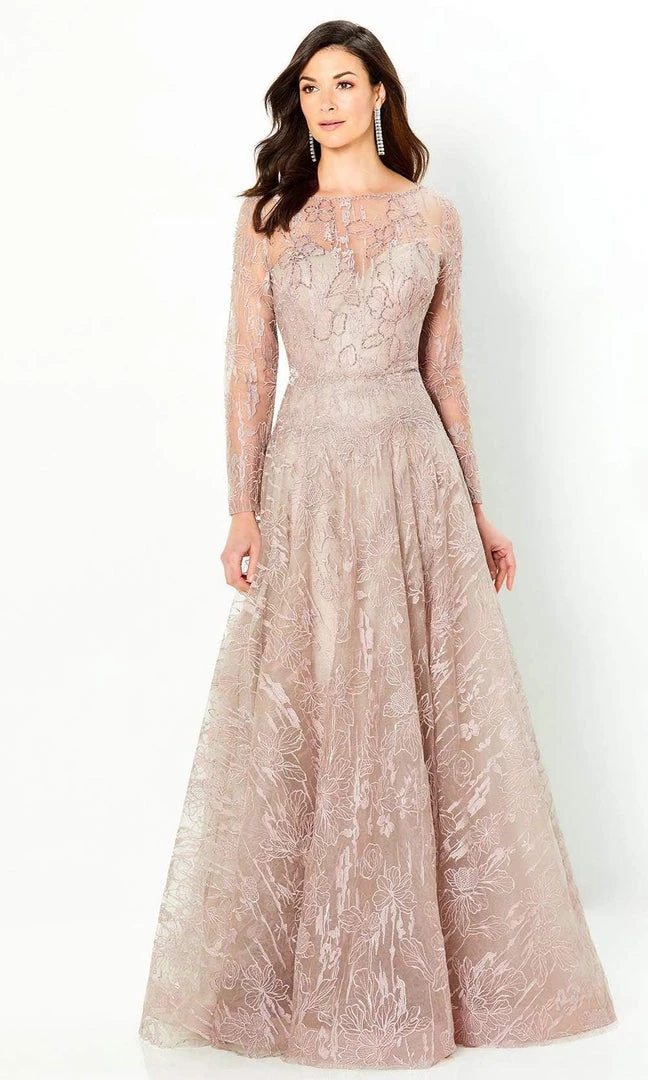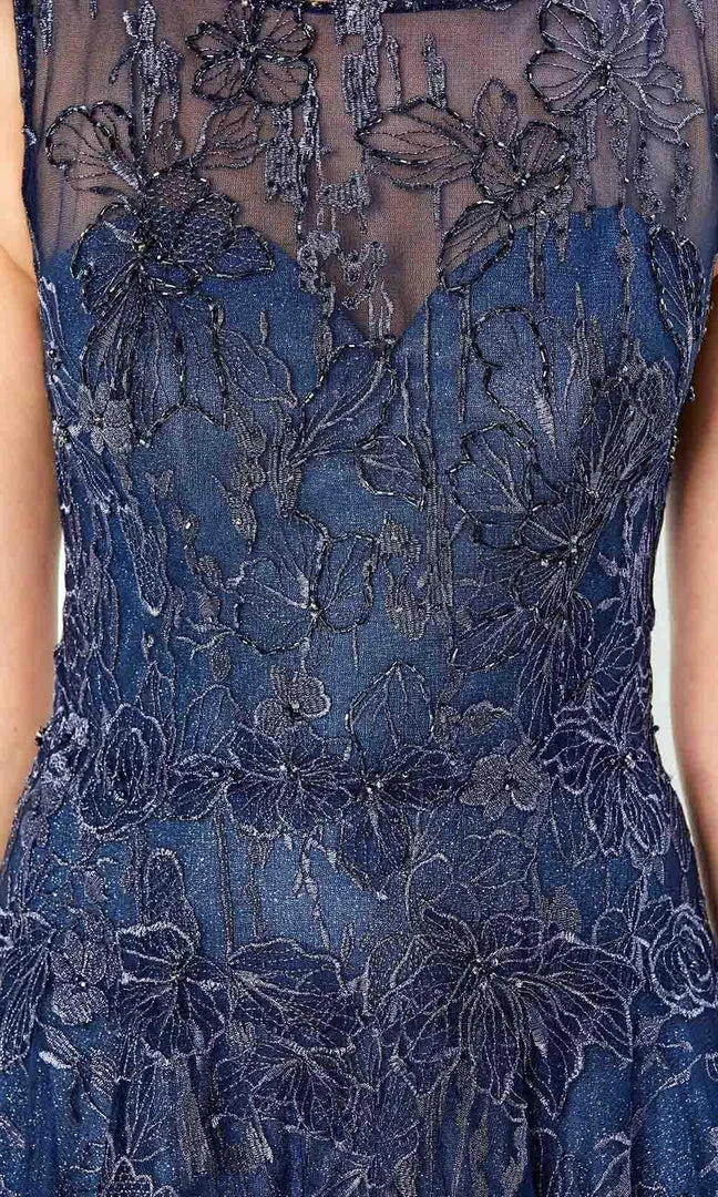 Shine when you are at your finest in this Montage by Mon Cheri 220935 creation. This gown parades a rendering of embroidered lace overlaying a sparkle jersey lining. An illusion bateau neckline exquisitely complements the keyhole cutout on its sheer back design. A drop waist design glides to a scintillating spectacle of its floor length A-line skirt. Removable long sleeves and a matching shawl perfects this exceptional ensemble. Brandish a style that will surely wow the crowd in this Montage by Mon Cheri masterpiece.