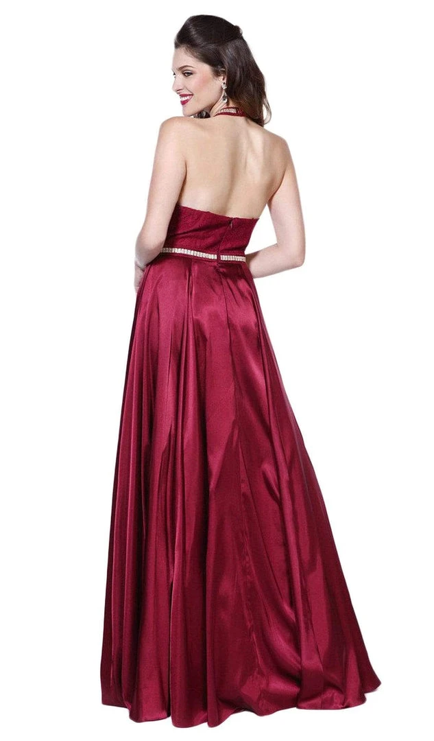 Look like a dreamy vision at your sumptuous event in this Nox Anabel 8198 creation. This elegant long A-line dress reveals a sleeveless halter neckline with beaded collar and lace embroidered bodice over a sweetheart line. The waist is cinched in a beaded band and exhibits a mid-open back. The dress has zipper closure and its A-line satin skirt gently flares and finishes in a full length hemline. Make memories worth reminiscing in this enticing Nox Anabel masterpiece.
