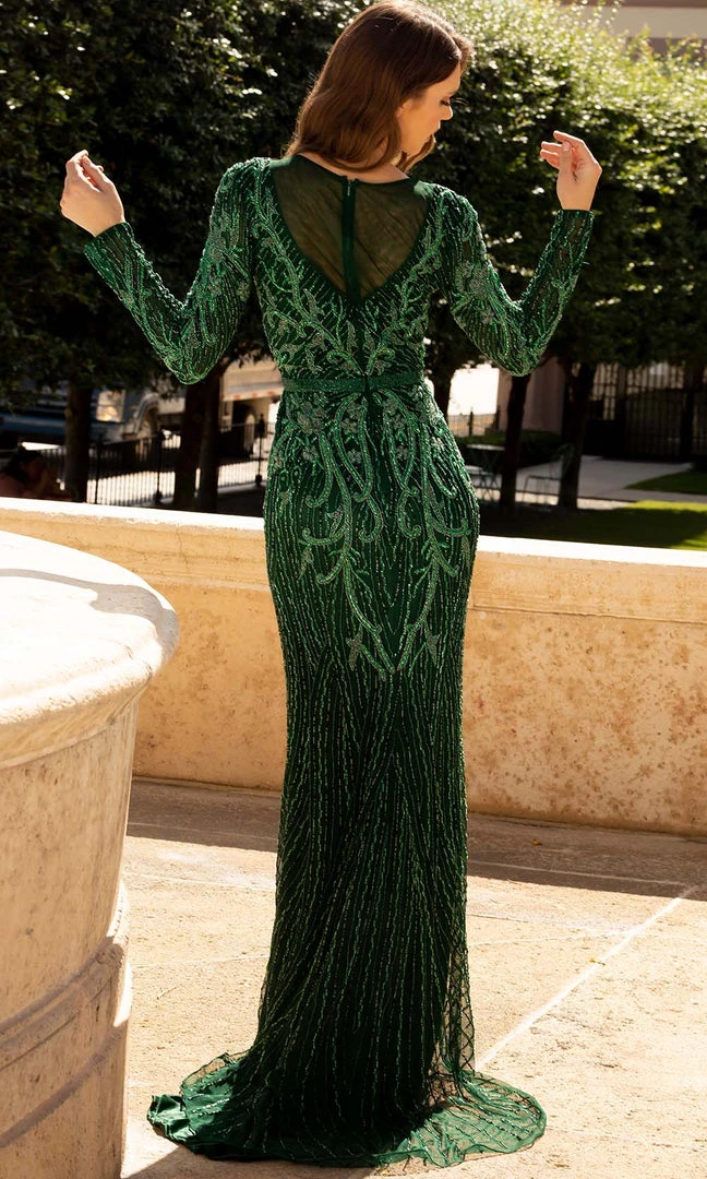 Bring a breathtaking new look to prom night in this stunning Primavera Couture 11057 special occasion gown. Trailing with lush blossoms and glistening beads, this beauty shows a bateau neckline with fitted long sleeves. The back portion of the gown has this illusion sheer inset with a back zipper closure. This Primavera Couture is awesome for any special night event! Primavera Couture’s sparkling long sequin dresses and cocktail dresses will dazzle you with compliments as these dresses are extremely impressive.