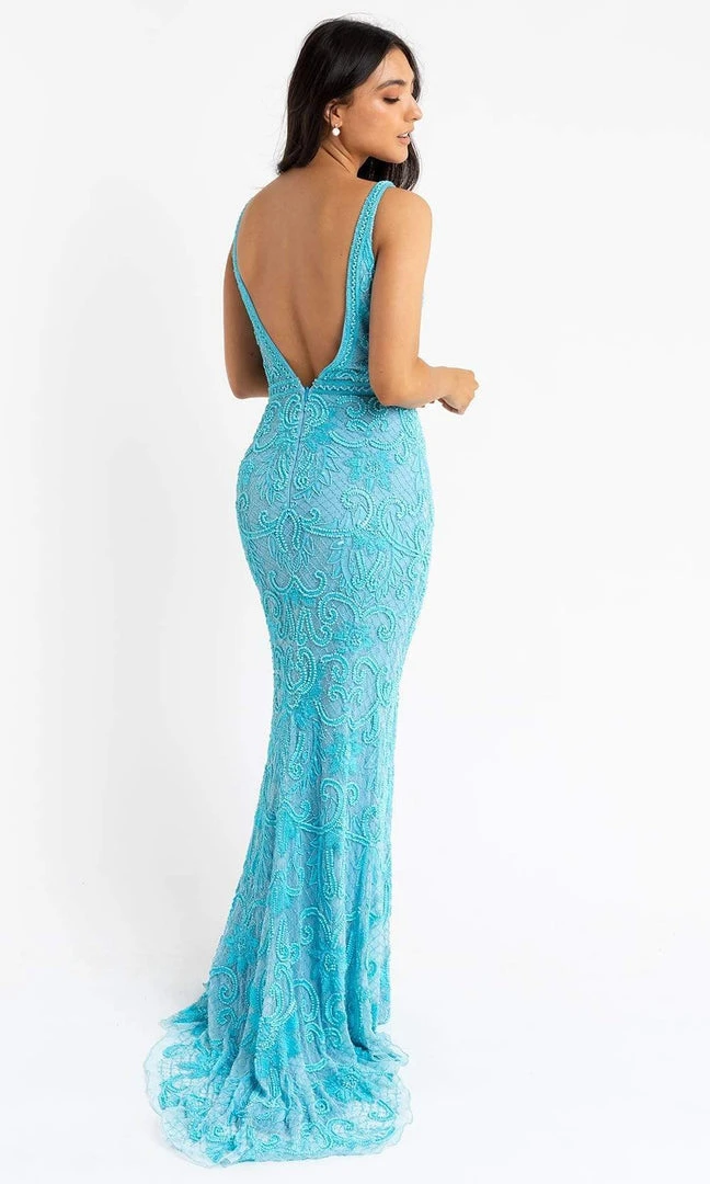 Show up in this Primavera Couture 3745 that has the perfect amount of glitz and glamour. This sleeveless gown is beaded from the low V Neckline and Wide Straps that create a V in the Mid Back, it has a side slit that makes it perfect. Primavera Couture will make sure you turn heads all night long. Primavera Couture’s sparkling long sequin dresses and cocktail dresses will dazzle you with compliments as these dresses are extremely impressive.