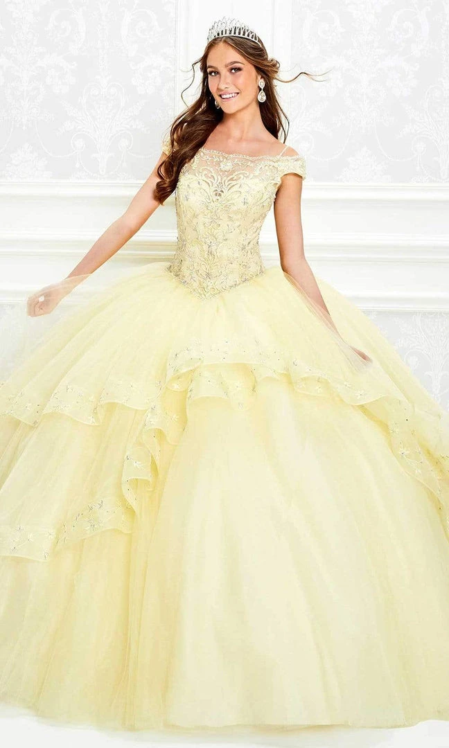 Parade the elegant and sophisticated sense of style in this Princesa by Ariana Vara PR11926. This gown fashions an off shoulder neckline with cap sleeves. The bodice of this dress is embellished with glowing bead work that will make you stand out. The tulle ball gown skirt showcases an encrusted ruffle creating a unique look to the skirt. The back of this dress is designed with applique and features a zipper closure. This dress comes with a matching shawl. Get glam in this fabulous Princesa by Ariana Vara creation.