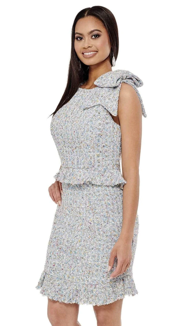Look sophisticated and mature in this simple yet chic Rachel Allan 50057 short dress. This lovely dress exhibits a jewel neckline complemented by a single shoulder bow in a sleeveless bodice with peplum features. The back shows a fabulous full back enclosed with back zipper while the skirt highlights a sheath silhouette, making the whole look more complete. Leave trail of admirers as you glisten in beauty in this Rachel Allan masterpiece on your next event.