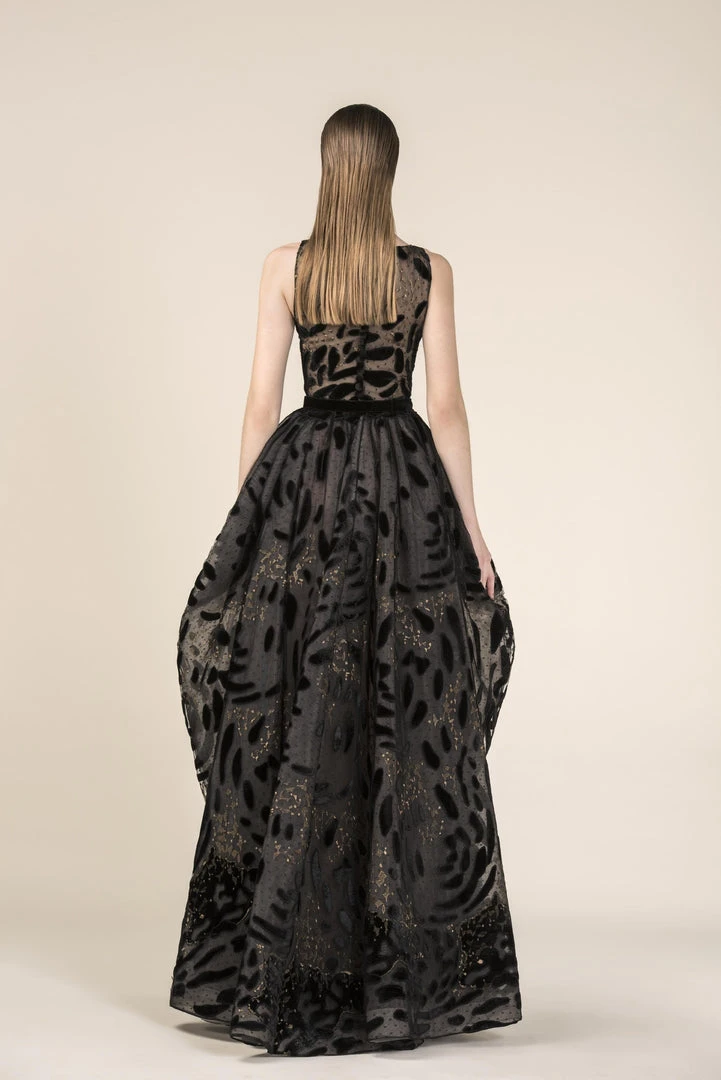 Enter the hall with grace and beauty in Saiid Kobeisy RE3583. Parades in a sleeveless, bateau neckline with fitted bodice wrapped in a thin velvet belt. From the waist begins a full length brode A-line skirt. Orchestrate your moment to stand out in this dress from Saiid Kobeisy.