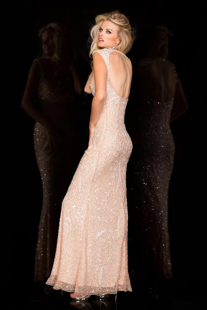 Make a statement in a gorgeous beaded evening dress with a sweetheart neckline and dramatic open sexy, silhouette from Scala 48548