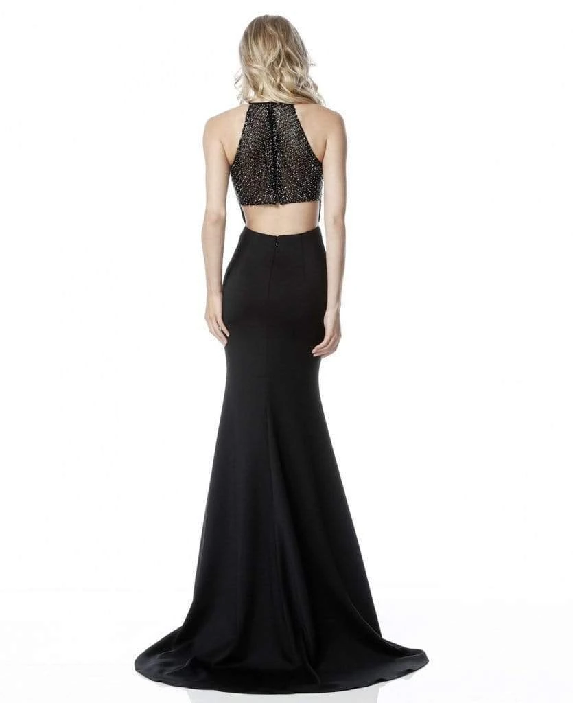 Enhance your visual appeal in this luxurious dress by Sherri Hill 51697. This beaded dress enchants in a sleeveless, halter neckline with a back cutout. The jersey skirt forms a full length trumpet silhouette and finishes in a sweep train for added drama. You’ll look fantastic in photos with a beautiful gown from Sherri Hill.