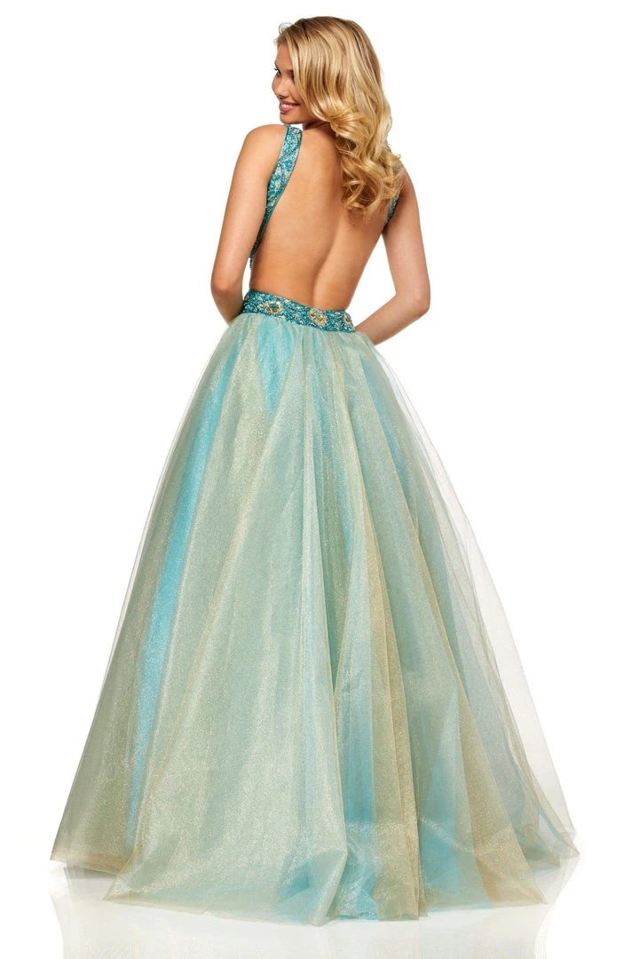 Draw out the princess in you with this Sherri Hill 52403. This beautiful long gown features beaded halter neckline and beaded waistline on a gown that is made with tulle fabric. The skirt is flared voluminously and is perfect to look like a modern princess. This is designed with a playful open back style. This Sherri Hill is perfect on your next formal event!