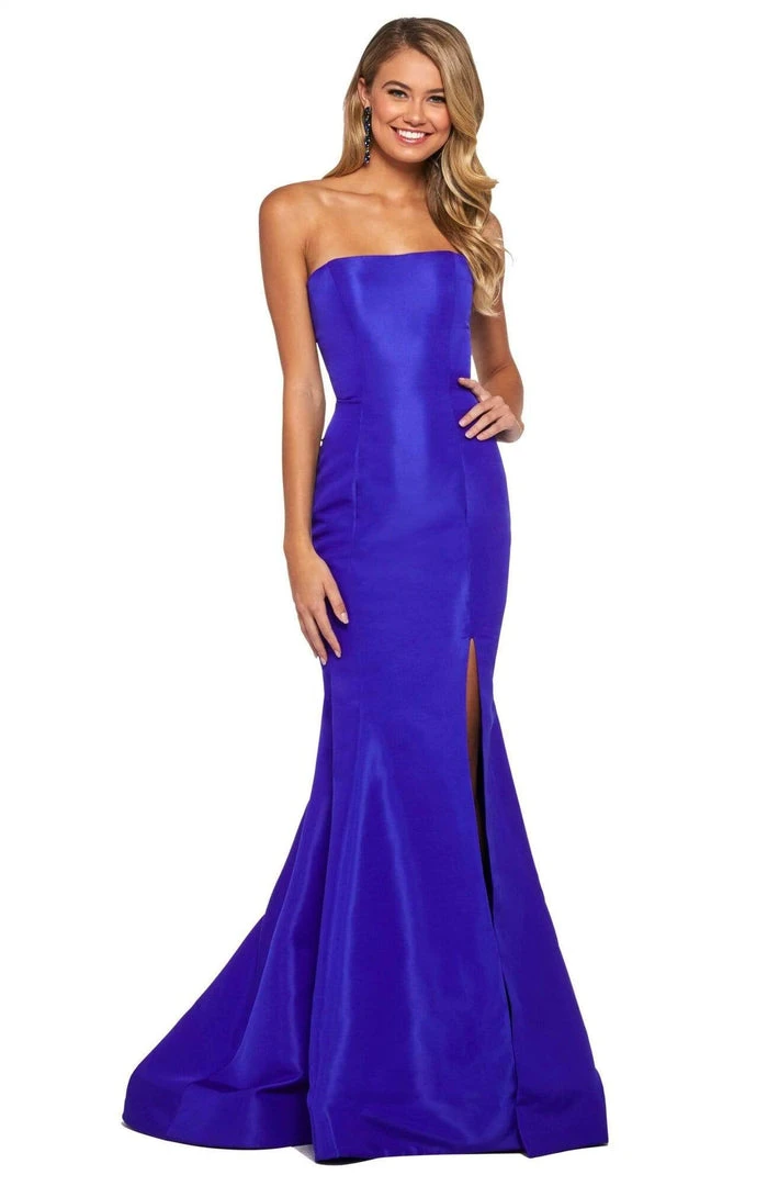 Look jaw dropping in this lovely Sherri Hill 53341 formal evening gown. This mesmerizing strapless prom dress has a fitted bodice sculpted with princess seams and is secured at the back with a gap at the center to make way for the sexy lace-up style closure. This stunning piece is crafted in luminous iridescent stretch taffeta, and is fitted through the hips and flares out above the knee for a graceful mermaid silhouette that finishes with a dramatic sweep train. Glamour gets gorgeous in this Sherri Hill design.