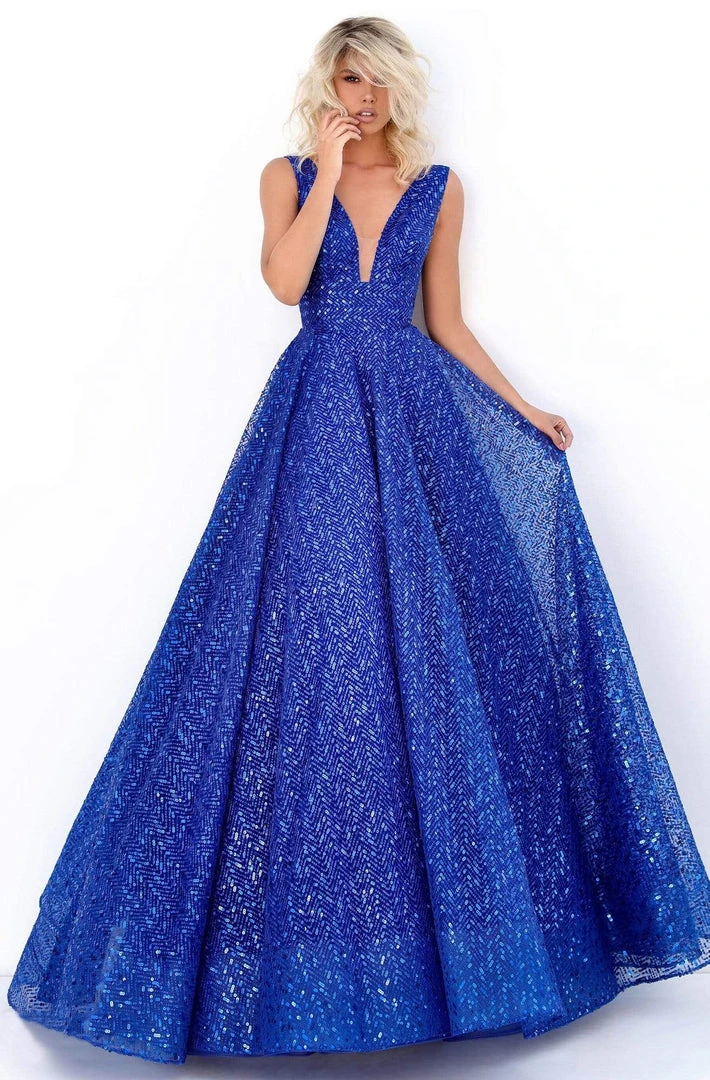 Strike a pose and outshine everyone in this Tarik Ediz 50660 creation. Adorned with sequins texturizing its length, this gown flatters with a plunging v-neckline and an illusion inset. Embraced with a wide band along the midriff and a plunging v-open back, The fluttering iridescent skirt flares into a sweep of train. Showcase an exceptional look all night long in this Tarik Ediz masterpiece. Model is wearing the Royal Blue color.