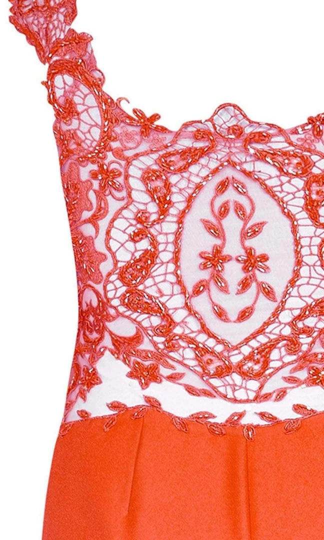 Shake the world with your preference for the stylishly dainty pieces in this glamorous Tarik Ediz 92568 creation. Elegantly seamed using the vibrant crepe fabric, this stunning piece shows off an off-shoulder neckline and a cutout mid-open back done in a florid and beaded Baroque lace design. Complemented with a glorious fit and flare design, the trumpet skirt adds an exquisitely fancy vibe wit isweep train. Look extra glamorous in this breathtaking Tarik Ediz masterpiece.