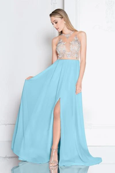 Get an instant attitude in a stylish creation from Terani Couture 1811P5215. This fierce stunner highlights a beaded embellished nude illusion fitted bodice with jewel neckline and strapless frame. The pleated chiffon skirt cascades perfectly to the floor into a wide A-line silhouette with front slit. This Terani Couture creation is breathtakingly stunning and beautiful. Perfect on your next formal event!